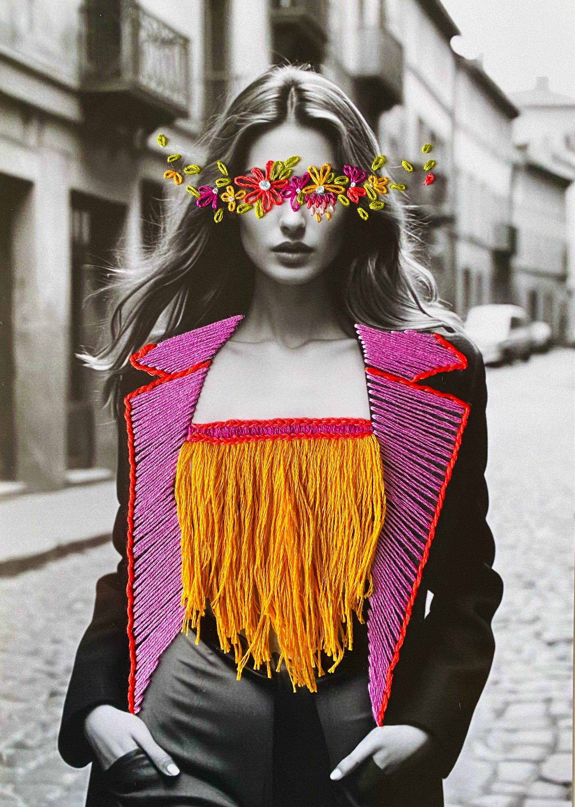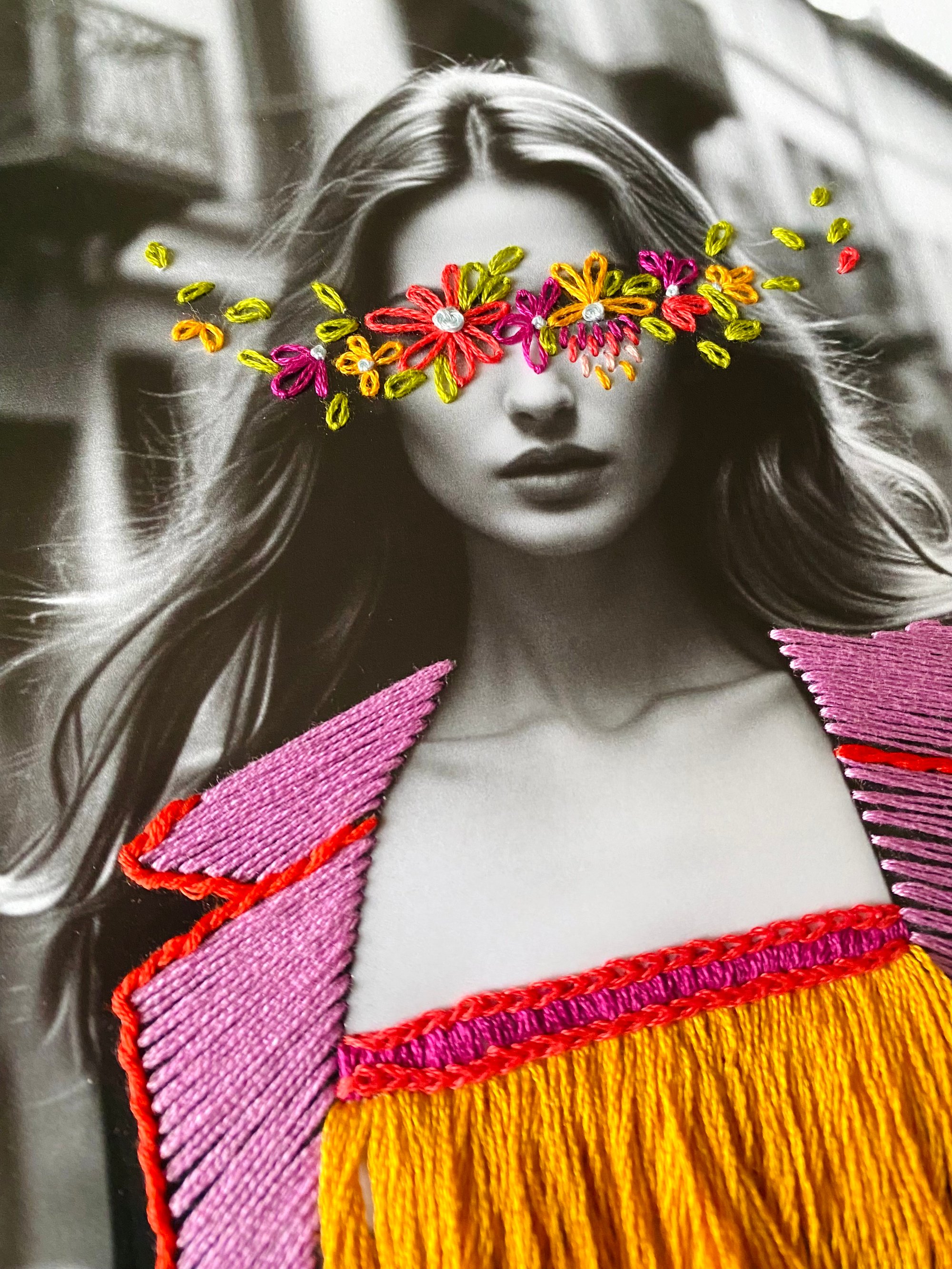 * Hand-stitched with high-quality Mouline threads, adding texture, depth, and a unique artistic finish.